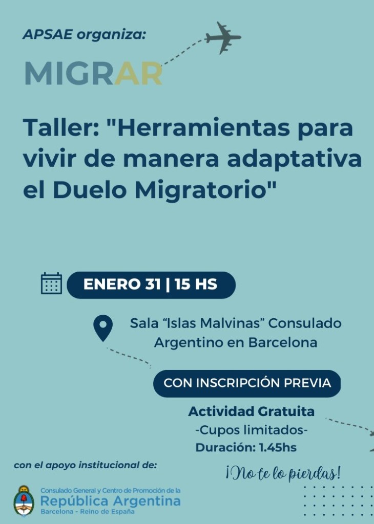 Taller: Maleta Migrante. Sábado 27 de septiembre 2025. Escuela Argentina en Barcelona.